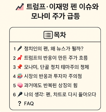 이런 해프닝성 이슈는 투자자들 사이에서 ‘정치 테마주’로 여겨지곤 해요. 그리고 그 중심에는 늘 등장하는 이름이 있죠. 바로 모나미입니다. 오늘은 이 이야기를 한 번 깊게 들여다보려고 해요. 🙂